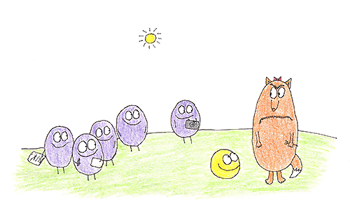 Эта картинка для привлечения внимания наглядно показывает, что довольно сложно съесть колобка, когда на тебя смотрят несколько непонятных чуваков.